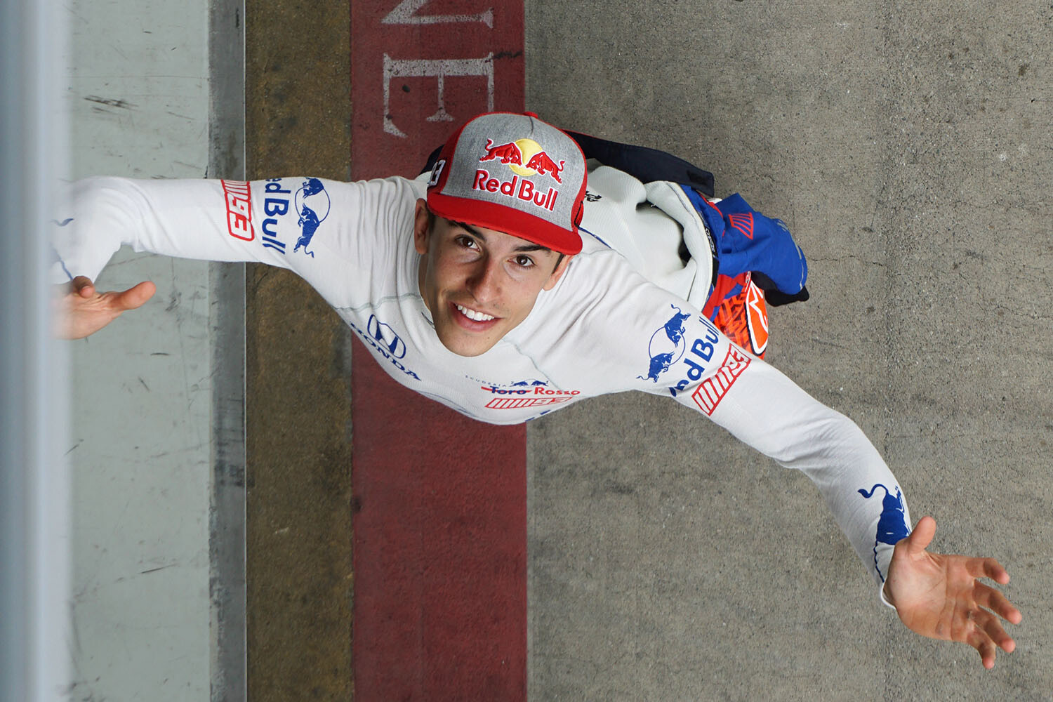 El resplandor de Marc también fue obvio en ese día. Esto demostró que el actual líder del Campeonato del Mundo de MotoGP, no solo se siente cómodo con su Honda RC213V, sino también con otras tomas rápidas en poco tiempo. Cuando se le preguntó cuál era su primera impresión del cambio a los autos de F1, dijo que había sido la vista a la que no esta acostumbrado y la forma de sentarse. También dijo que se sentía atado a una caja y solo veía la parte superior de dos ruedas. También los puntos de frenado que se hacen mucho más tarde y las altas velocidades en las curvas han sido desde el principio, inusuales e impresionantes.
