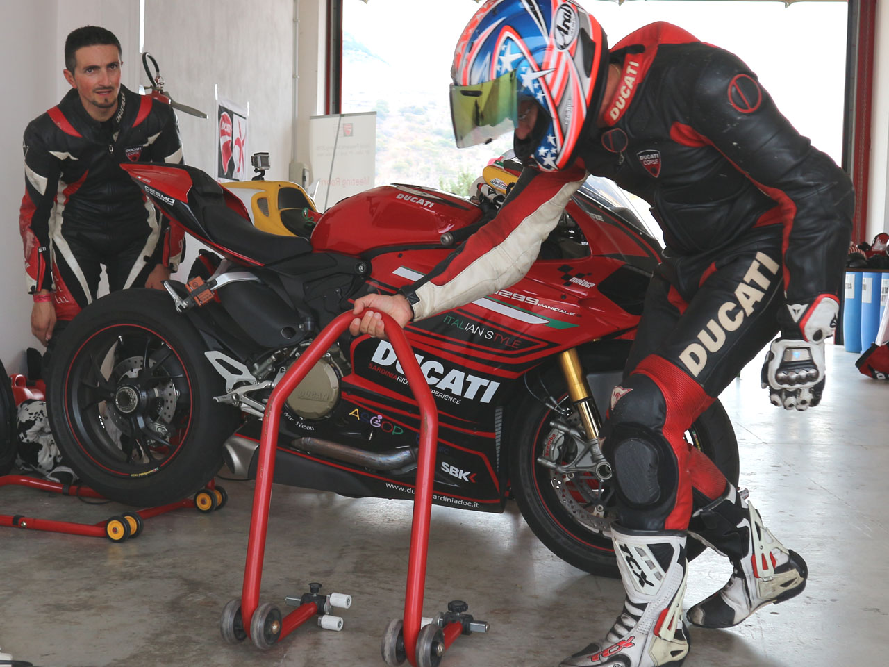 Così abbiamo trascorso insieme il nostro primo tardo pomeriggio sulla pista a Mores. La Ducati Challenge al mio arrivo era già conclusa, ma c’era ancora il secondo giorno del Ducati Test dove si poteva provare la nuova Supersport e Panigale 959. Un momento drammatico è stato la caduta di Eleonora Ledda, che alla fine però non era niente di grave e così il ‘12° Ducati Test Day e Challenge & 2° Trofeo Claudio Chiodini’ è stato tutto sommato un evento ben riuscito.