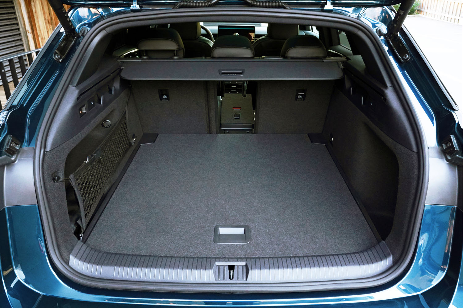 Auch beim Gepäck geht es großzügig zu. Hinter der großen Heckklappe bietet der VW ID.7 Tourer ein Kofferraumvolumen von 605 Litern mit zusätzlicher Durchlademöglichkeit. Bei umgeklappter Rücksitzbank stehen 1.714 Liter auf einer Länge von zwei Metern und einer Breite zwischen den Radkästen von einem Meter zur Verfügung. Im Passat ist zum Vergleich mit 690/1.920 Litern noch etwas mehr Stauraum vorhanden. Auf Knopfdruck lässt sich im Kofferraum die bei Nichtgebrauch unsichtbare Anhängervorrichtung entriegeln und ausklappen. Die Anhängerlast gebremst bei Steigungen bis 12 Prozent beträgt 1.000 Kilogramm.