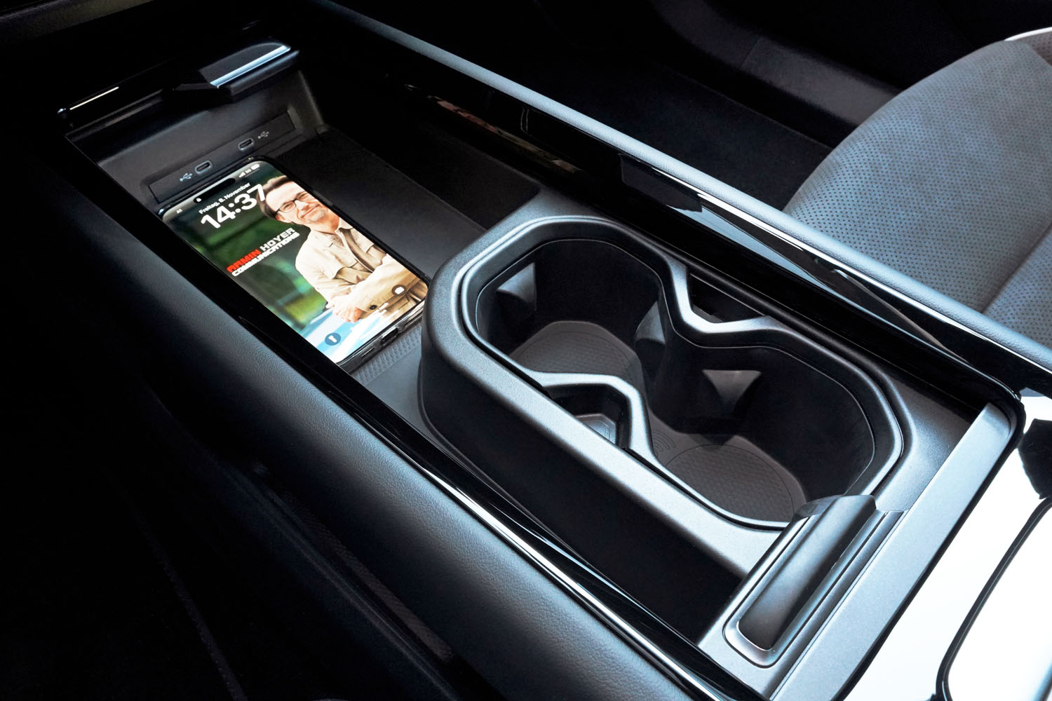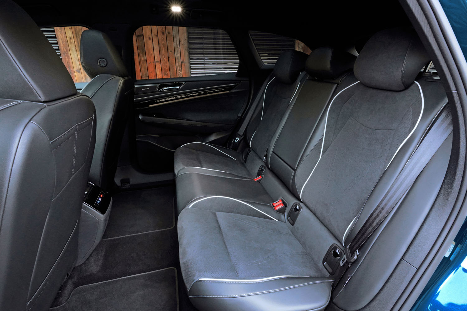 In der Mittelkonsole konnte ich mein Smartphone induktiv aufladen. Zwei weitere USB-C-Anschlüsse dienen ebenfalls als Stromspender. Ablagen sind in der Mittelkonsole und den Türen ausreichend vorhanden. Mit einem Radstand von knapp drei Metern sind die Platzverhältnis für die Passagiere im Fond als fürstlich zu bezeichnen.